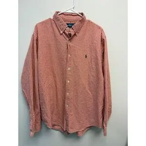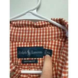 Polo Ralph Lauren Mens XL Custom Fit Orange Gingham Check Button Down Shirt