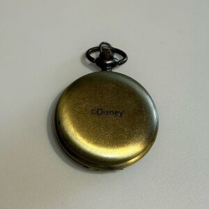 Charming bronze pocket watch with intricate design. Features whimsical characters and floral details. Marked Disney . In good condition, needs a new battery.