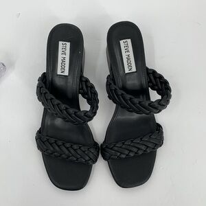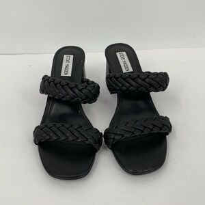 Steve Madden Infused slide sandals black braided double strap chunky heel shoe 8
