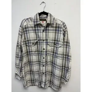 Vintage Levis Mens Plaid Button Up Shirt Textured Flannel Long Sleeve Small