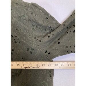 Vintage Inspired Cotten Women's Large Olive Green Eyelet Lace Ruffle Neck Blouse