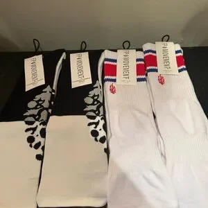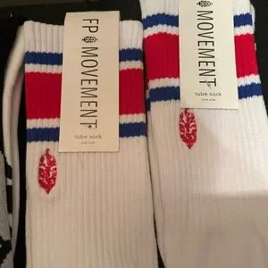 Four pairs of Free People Movement socks NWT. Two Black / White & two Red / blue