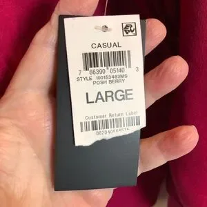 Love these colors together! This ID Ideology sweatshirt pullover is in colorblock Posh Berry. Ladies size large. The 1/4 zip has an O-ring attached and can be worn open or zipped to create a mock neck. It’s 60% cotton and 40% polyester with a fleece lining. The pit-to-pit measurement is 34” (without stretching), the length is 25” and the sleeves are 24”. Ribbed hem (but not constricting) and cuffs with a kangaroo pocket. This cute and relaxed-fit top was created for Macy’s. Adorable and NWT!