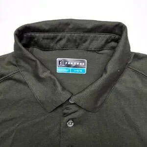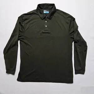 PGA Tour Shirt Long Sleeve Polo Striped Dark Green Mens Large Golf Top