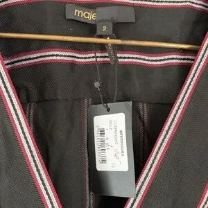 Maje Striped Black Red Pandomi V-Neck Wrap Woven Jumpsuit Surplice Pocket Medium