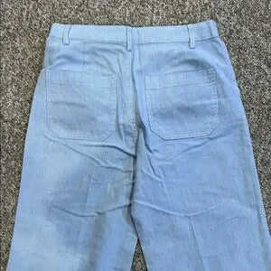 Stylish light blue cropped pants. High-rise and wide-leg design. Perfect for casual wear. Sits above waist.