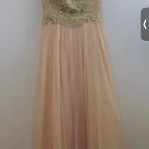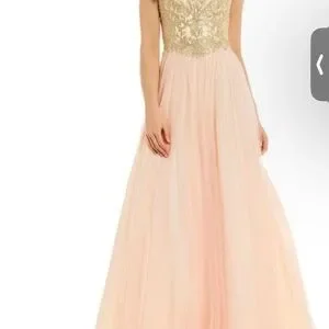 Stunning gown with a gold embellished bodice and flowing pink skirt. Perfect for formal occasions. Blondie dress by Stacy Sklar, formal dress. New. Size 7.