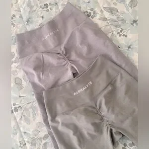 Includes 2 pairs of Small Alphalete Amplify pastel leggings in purple and grey
