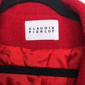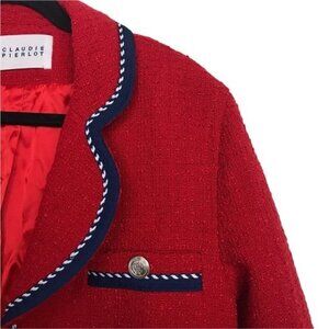 Claudie Pierlot Red Gamin Contrast Trim Tweed Coat Jacket Size 4