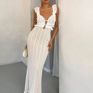 Make a stunning statement at your graduation with this elegant white crochet maxi dress, featuring a sexy off-shoulder sweetheart neckline and a slim-fit mermaid silhouette. The high-waisted bodycon design ensures a flattering fit, while the white color adds a touch of sophistication.