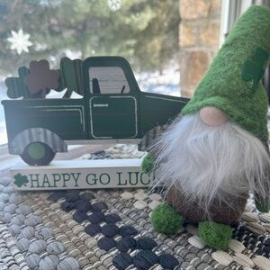 Celebrate the season with this charming St. Patrick’s day sign and gnome decor. Perfect for adding a festive touch to your home.