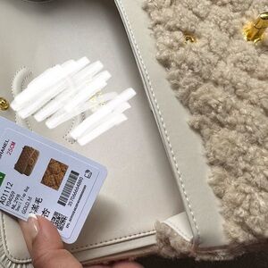 Discover elegance with this cream textured shoulder bag. Its sophisticated design and gold chain strap make it a perfect accessory for any outfit. perfect for après ski!!!