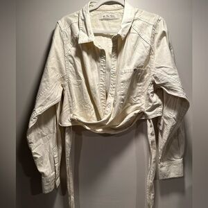 We The Free 2 Way Long Sleeve Wrap Around Ivory Denim Cropped Top Front Pocket