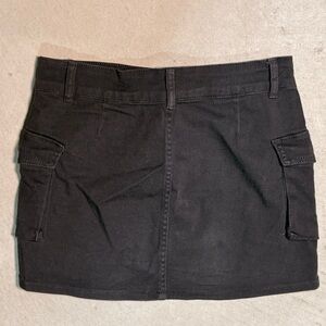 Women’s black cargo mini skirt. Nickel buttons and large cargo pockets. Belt loops, size large, 14.5" length. In excellent gently owned condition.