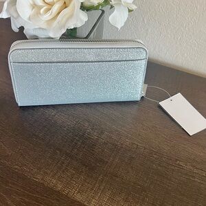 Elegant silver wallet with a glittery finish. Ideal for a chic, everyday accessory.
