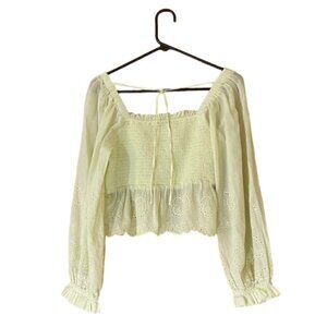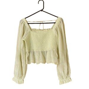 AMERICAN EAGLE Smocked Eyelet Embroidered Balloon Sleeve Top, Size Large - NWT