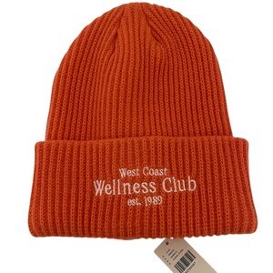 New ANTHRO Daily Practive West Coast Wellness Club Orange Cable Knit Beanie Cap