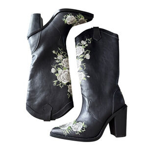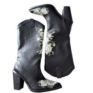NEW Widow Mourning Rose Embroidered Western Romance Floral Boots Sz 8 Cowgirl