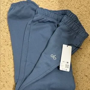 Comfortable blue jogger pants by Alo. Perfect for casual wear. New with tags never worn i just missed the return date color is blue stone
