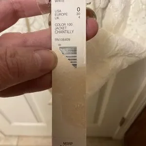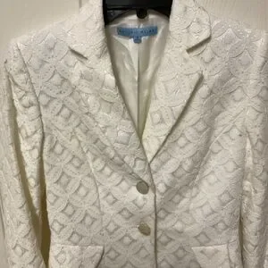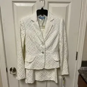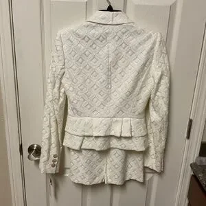 Beautiful Antonio Melani 2 piece suit size 0. Skirt and jacket. Cream colored lace. Fully lined. Extra jacket buttons. Classic look of luxury. Would be great for a formal event or wedding. NWT.