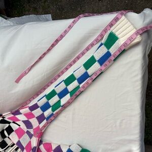 Bold checkered design with a zip-up front. Features black, pink, purple, green, and blue. Perfect for a vibrant look.