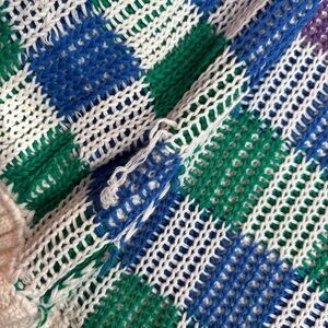 Teddy Fresh Full Zip Knit Hoodie Womens XS/S Checkered Multicolor Oversized