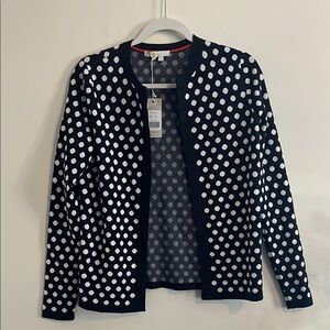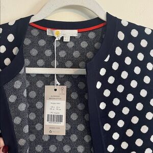 Boden Cleo Jacquard Knitted Cardigan Navy White Polka Dot 2 Twee NWT Retro Open