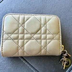 NWT, Small Lady Dior Voyageur Coin Purse in iridescent gold