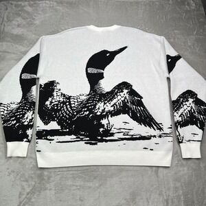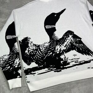 Waggle Loon Call Wildknit Crewneck Sweater Mens 2XL White Black Graphic Bird