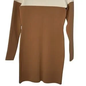 Diane Von Furstenberg Small Merino Wool Blend Sweater Dress Tan Black Colorblock