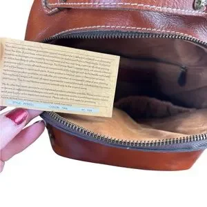 Authentic Patricia Nash leather backpack in beautiful warm tan/cognac. Crafted in Patricia Nash’s signature vintage-inspired leather with contrast stitching and antique brass hardware. Classic, structured silhouette that develops a rich patina over time.