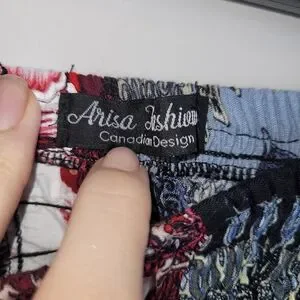 Arisa Canadian Design patchwork boho maxi skirt featuring a vibrant mixed print in florals, paisley, mandala and rainbow ombré panels. This statement skirt has a fully smocked elastic waistband for comfort and a flowy, tiered silhouette that moves beautifully.