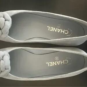 CHANEL Women's Light Blue Suede Camellia Ballet Flats size 40