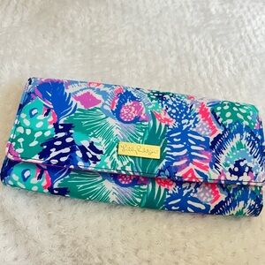 Lilly Pulitzer Travel Wallet in Multi Quill Out Travel accordion style wallet in Quill Out pattern. Metallic gold detailing. Labeled tab slots. Dimensions: 12.6" L X 7.09" H (32cm L X 18 cm H)