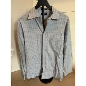 Lands' End Men's Pinpoint Oxford Plaid Button Down Shirt 15.5-34