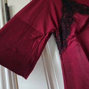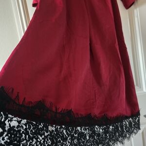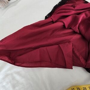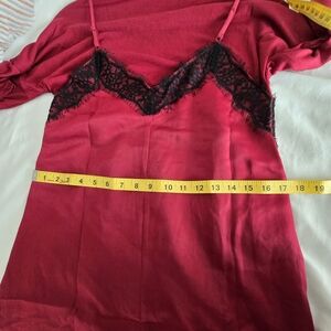 english factory oversized dress red lace midi layered slip dress relaxed fit black lace trim flowy boho chic womens xs small medium