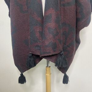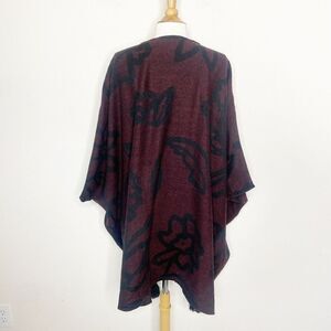 Cleobella Fringe Trim Burgundy Floral Poncho Wrap Cardigan O/S
