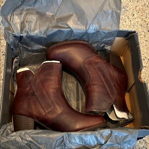 5.5 Women’s CAT boots, new in box. Brown lightly distressed. Alora WP Medium. Comes with box; box is slightly damaged.
