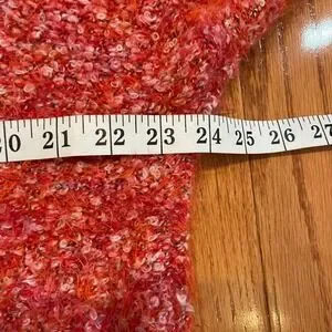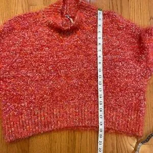 Wrap yourself in cozy comfort with this vibrant Free People textured knit sweater. The eye-catching coral hue is beautifully flecked with multi-color threads, adding a playful pop to your wardrobe. Its unique fuzzy texture and relaxed silhouette create an effortlessly chic look. Perfect for a casual weekend brunch or a cozy evening by the fire.