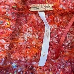 Free People Stardust Orange Pullover Knit Sweater Women's Small oversized shag