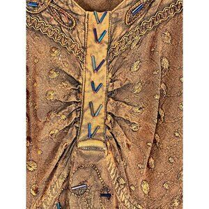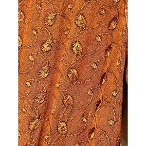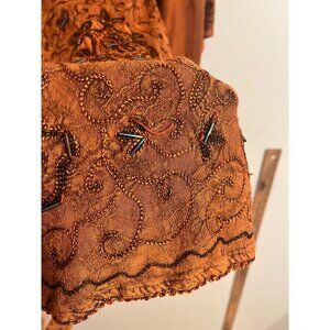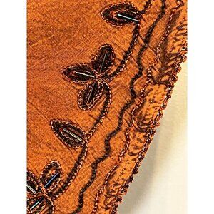 Retro Floral Beaded Boho Top Orange L Indie Hippie Western Folk Artsy Funky 80s