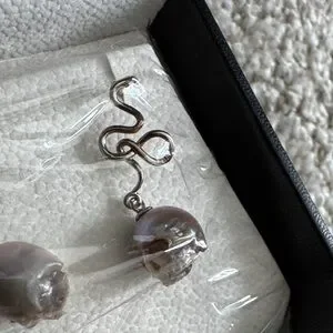 Unique silver skull earrings with a shiny finish. Perfect for adding an edgy touch to any outfit. Dainty and spooky earrings; stock photo is from the website for a different pair to get a a close up of the skull since these are sold out and also sealed. (20)