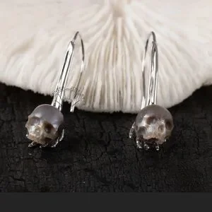 Vermeer Jewelry 925 sterling Silver Skull Pearl carved handmade gothic Earrings