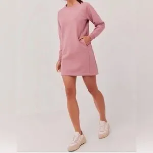 Chic pink mini dress by Pact. Soft fabric with long sleeves. Ideal for casual outings.