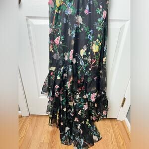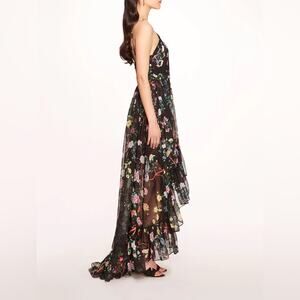Marchesa Notte Flowering Halter Neck High Low Gown in Black Multi 0