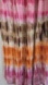 Vintage Baba boho tie dye midi dress featuring rich sunset tones of brown, orange, and pink with intricate embroidered detailing along the neckline. Sleeveless design with a flattering V-neck and flowy draped silhouette that tapers into an asymmetrical handkerchief hem.