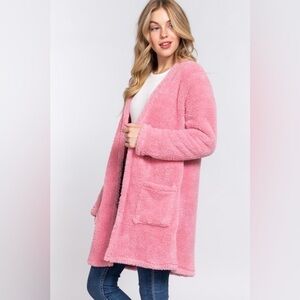 Serena Sherpa Open Front Jacket in Shell light baby Pink Sizes S, M, available