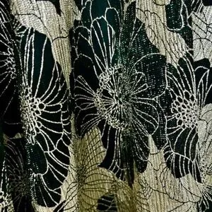The metallic gold and black floral pattern with subtle dark green sheen adds a beautiful shimmer that stands out under evening lighting.