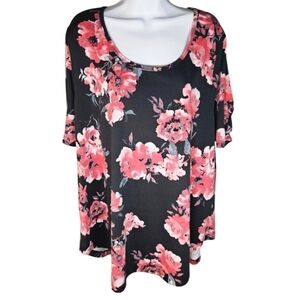 0014 LuLaRoe Rose Floral Top Tee Black Pink Comfort Stretch Plus Size 3X