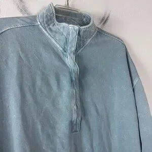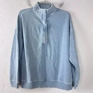 Aerie Oh Snap Sweatshirt Sweater Pullover Knit Top Henley Cloud Wash Blue Fleece